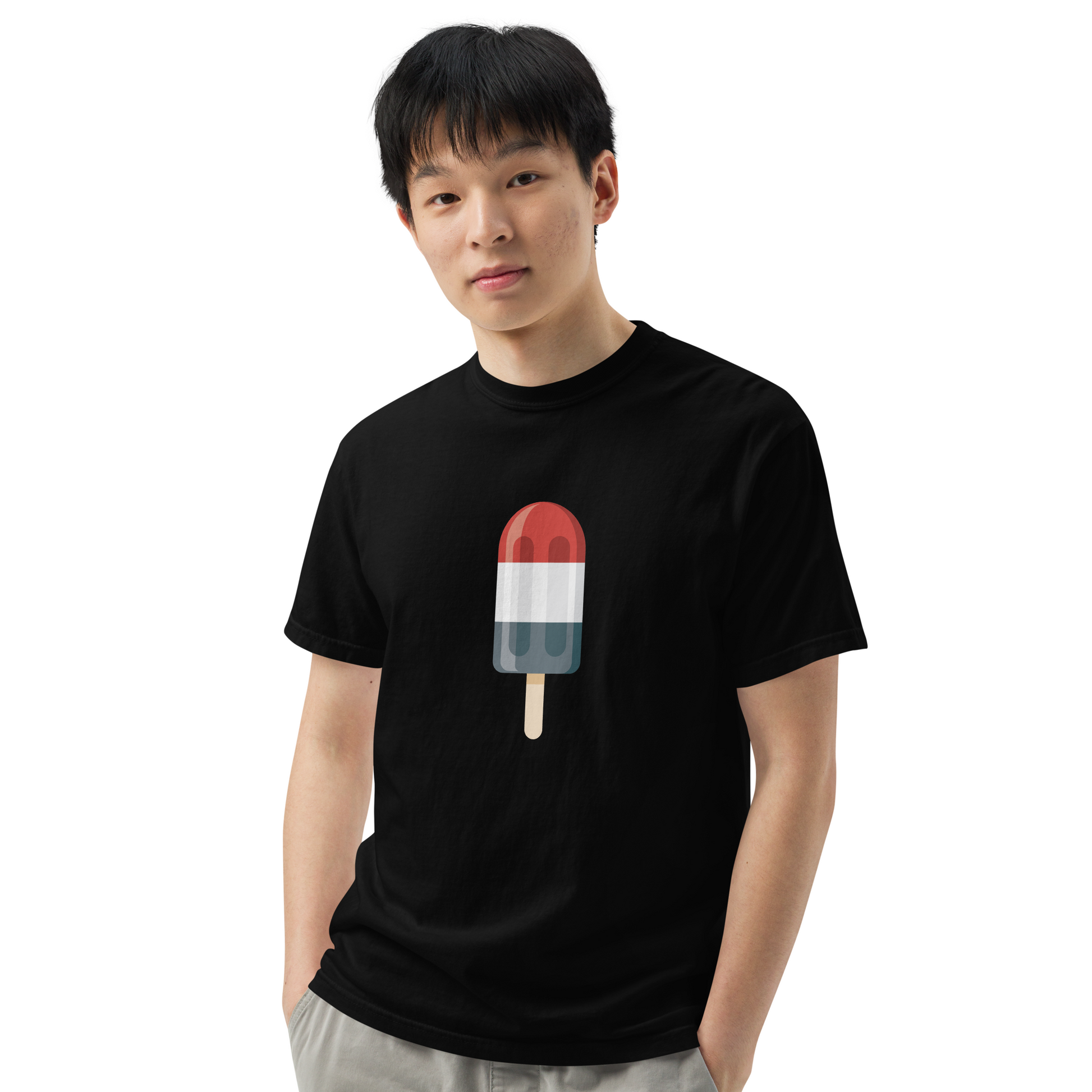 Embrace the spirit of Independence Day with this patriotic popsicle shirt, featuring a minimalist red, white, and blue popsicle design on the front. Crafted for comfort and breathability, this freedom shirt is your go-to choice for summer festivities.