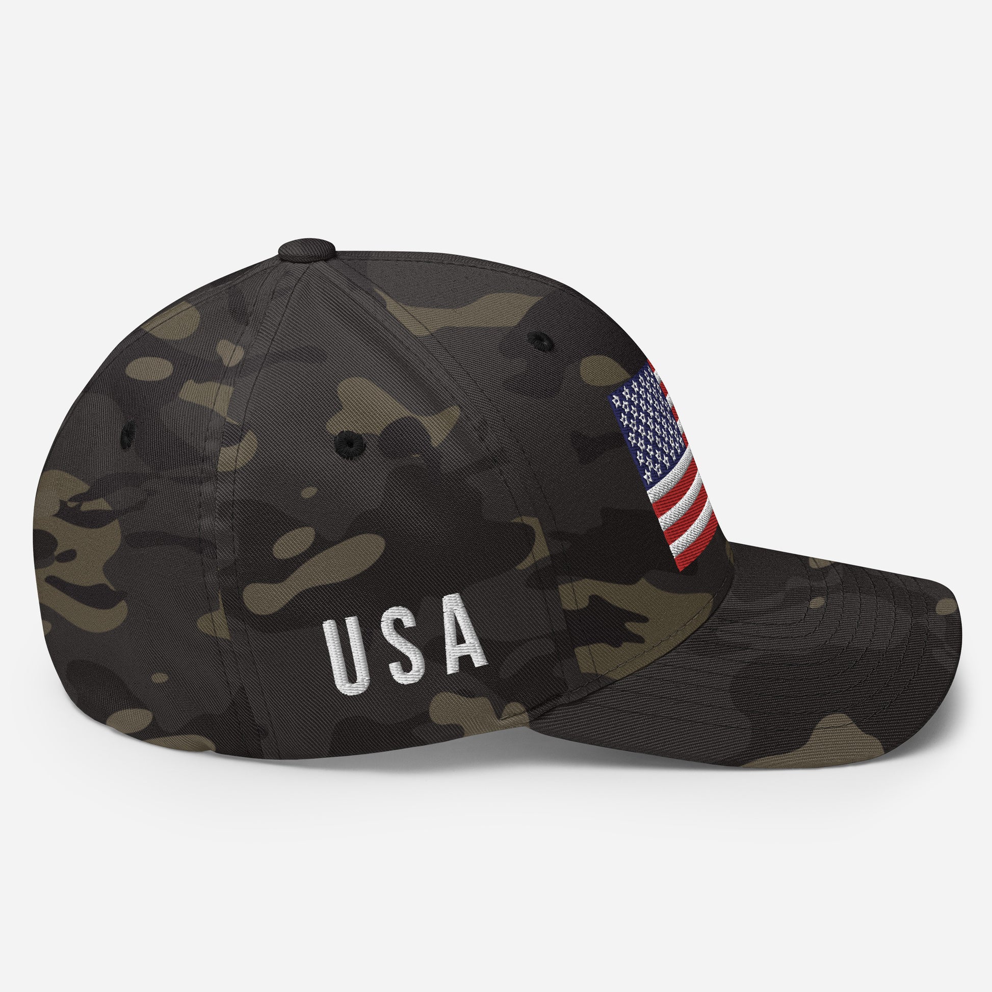 Show your patriotic pride with our American Flag Hats! Featuring a beautifully embroidered American Flag on the front and the bold initials "U S A" on the side, this USA flag hat is a must-have for every proud American.
