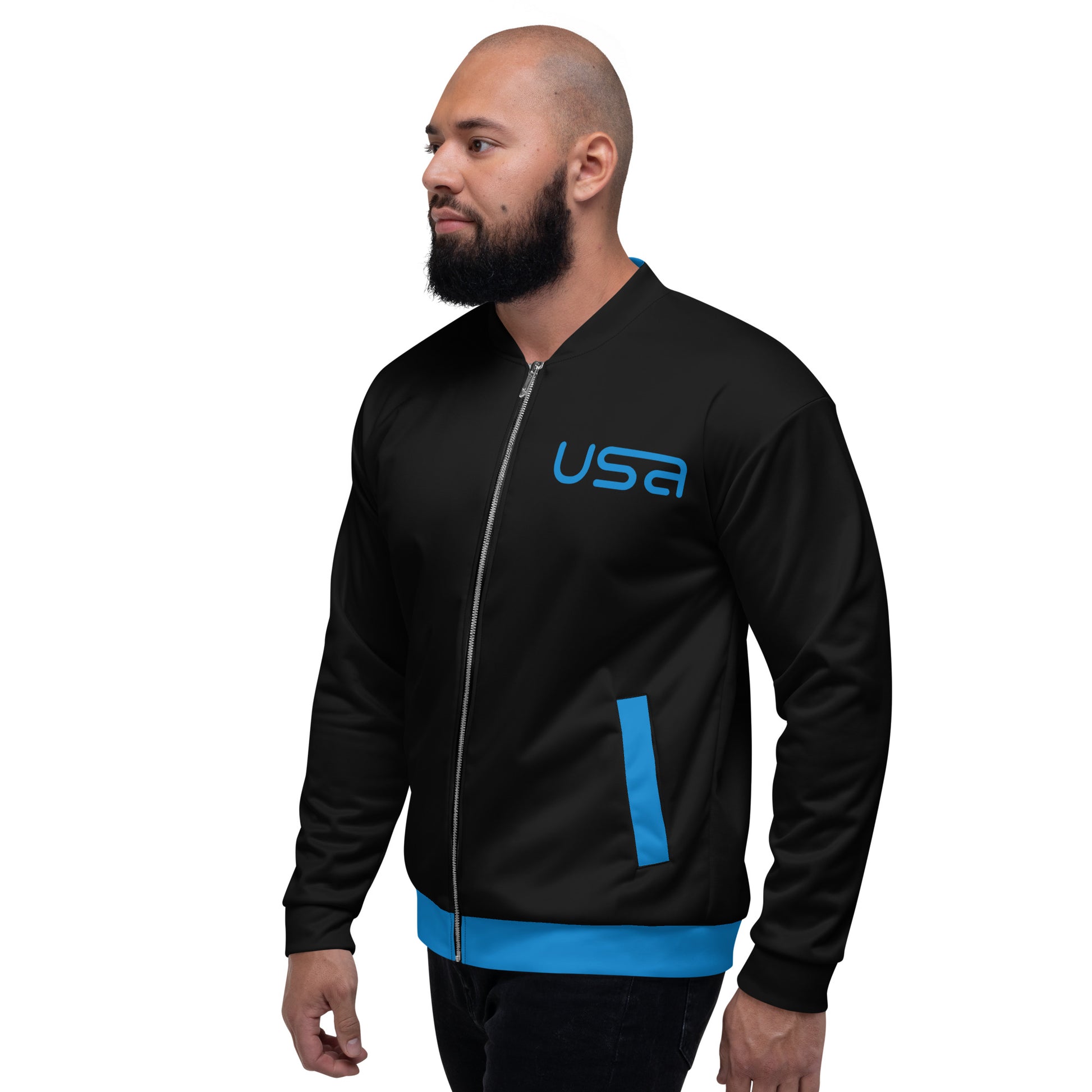 Introducing the USA Black Bomber Jacket, the epitome of cool and comfort! This Men's bomber jacket is the ultimate flight jacket you've been searching for. With a sleek black design, it's a timeless classic that fits like a dream.